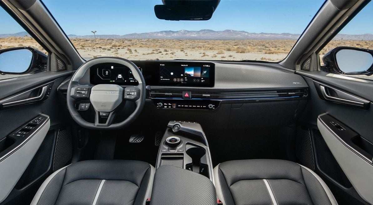 Inside, the 2025 Kia EV6 blends comfort and innovation. Every trim features a dual panoramic display with over 24 inches of screen space for navigation, media, and controls. Wireless Apple CarPlay and Android Auto come standard. Higher trims offer premium details like ambient lighting, a Meridian audio system, and ventilated front seats.