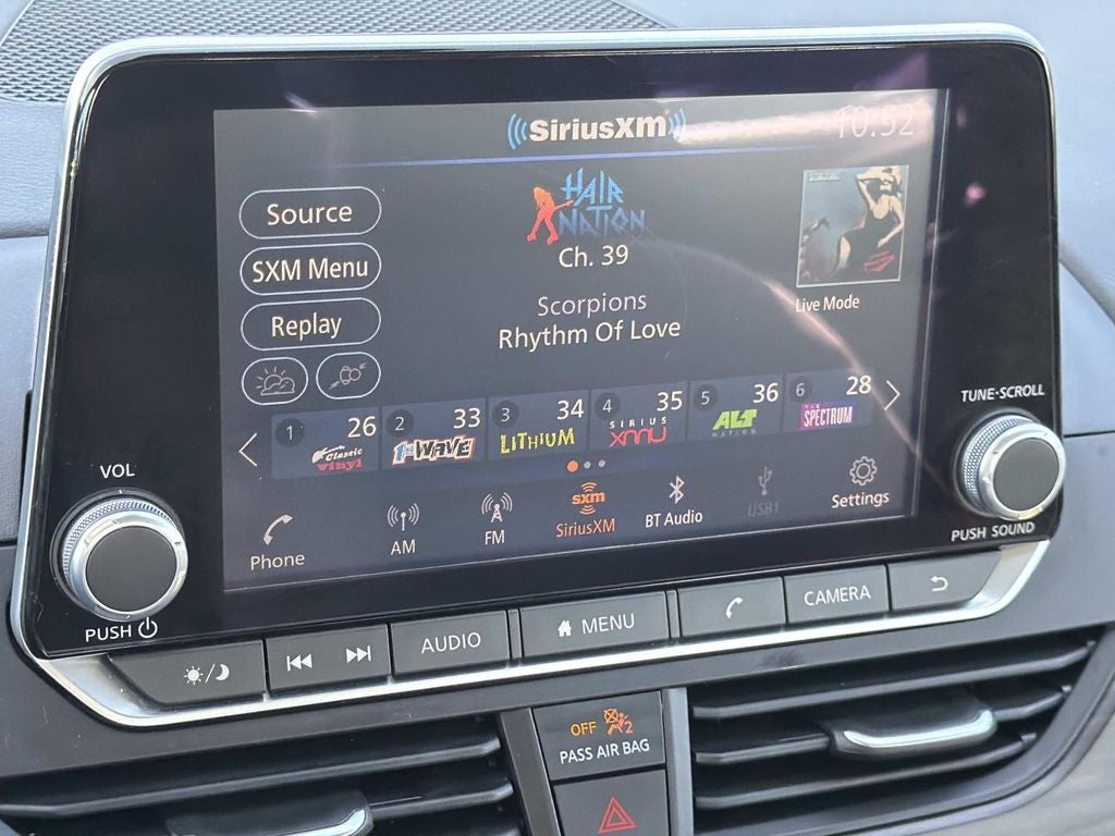 - Radio: AM/FM Audio System -inc: RDS, MP3 and aux-in, 6 speakers, NissanConnect 8" color display w/multi-touch control, Bluetooth® hands-free phone system, streaming audio via Bluetooth®, hands-free text messaging assistant, 2 front illuminated USB ports (1 type-A and 1 type-C) for compatible devices, Apple CarPlay, Android Auto, SiriusXM Radio, Siri Eyes Free, Google Assistant voice recognition and 2 rear illuminated USB ports (1 type-A and 1 type-C)