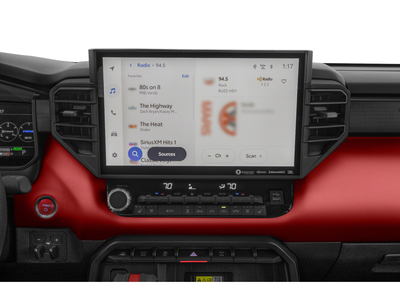 - Radio: Premium Audio w/JBL -inc: 14-inch touchscreen, 12 JBL speakers (including subwoofer and amplifier), Android Auto and Apple CarPlay compatible and SiriusXM w/3-month platinum plan trial subscription, See toyota.com/audio-multimedia for details